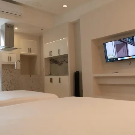 Las habitaciones del Infinity Suites Habitacion Doble 208 incluyen TV de pantalla plana con canales vía satélite y climatizador. Un inodoro separado y ducha también están incluidos en los baños.